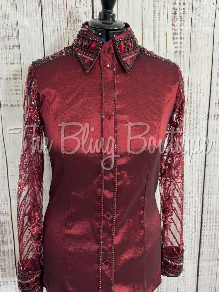 Burgundy Day Shirt Set With Beaded Lace Sleeves (L)