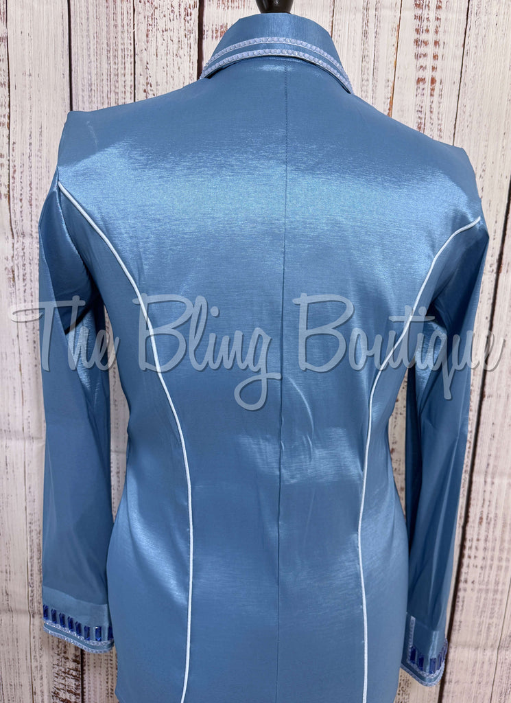 The shirts are made from a stretch taffeta base and are accented with high quality glass crystals that sparkle from every direction.