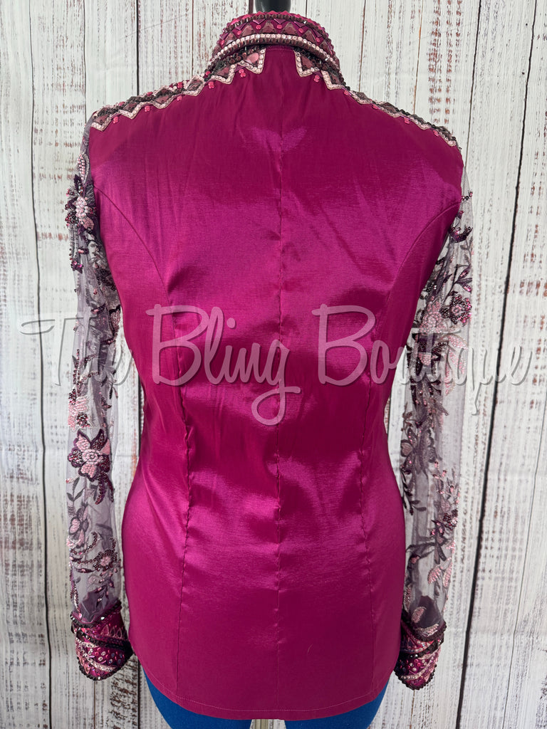 Raspberry & Plum Day Shirt Set With Lace Sleeves (L)