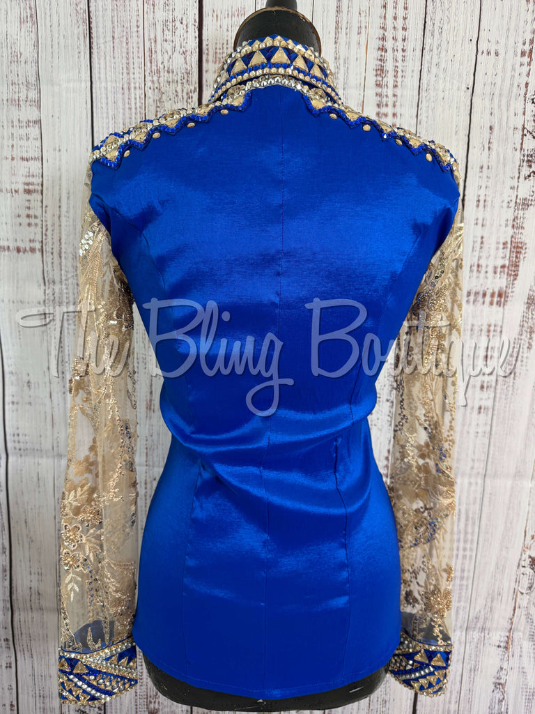 Royal Blue & Tan Day Shirt Set With Lace Sleeves (S)