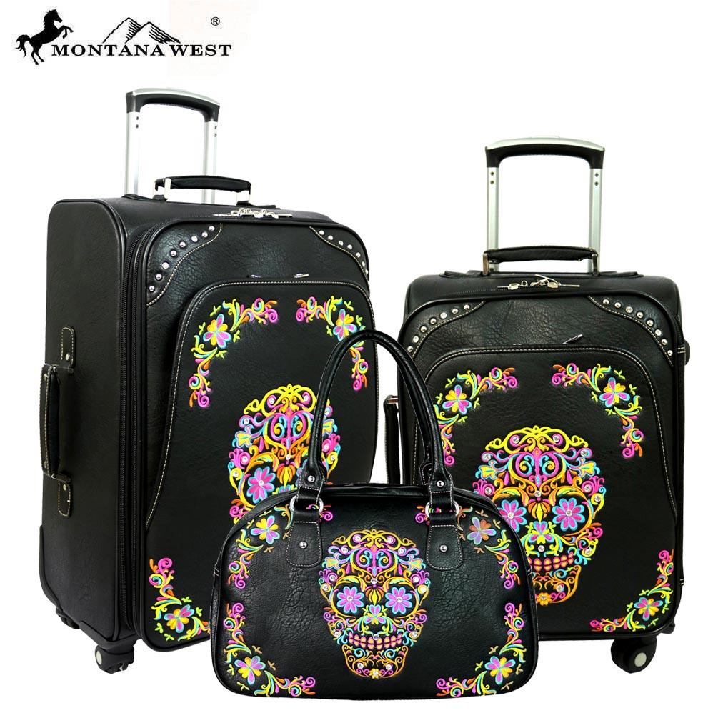 Montana West Sugar Skull Collection 3 PC Luggage Set - Brand New