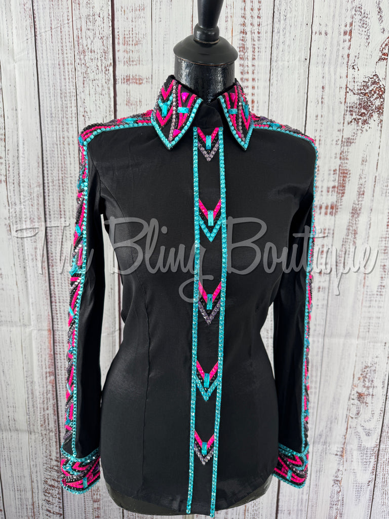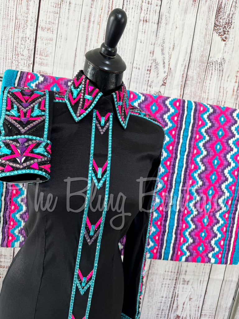 RE-ORDER Black, Turquoise, Bright Pink & Purple Day Shirt Set (S) (Choose Your Size)