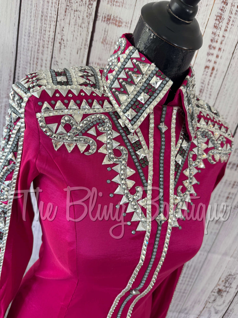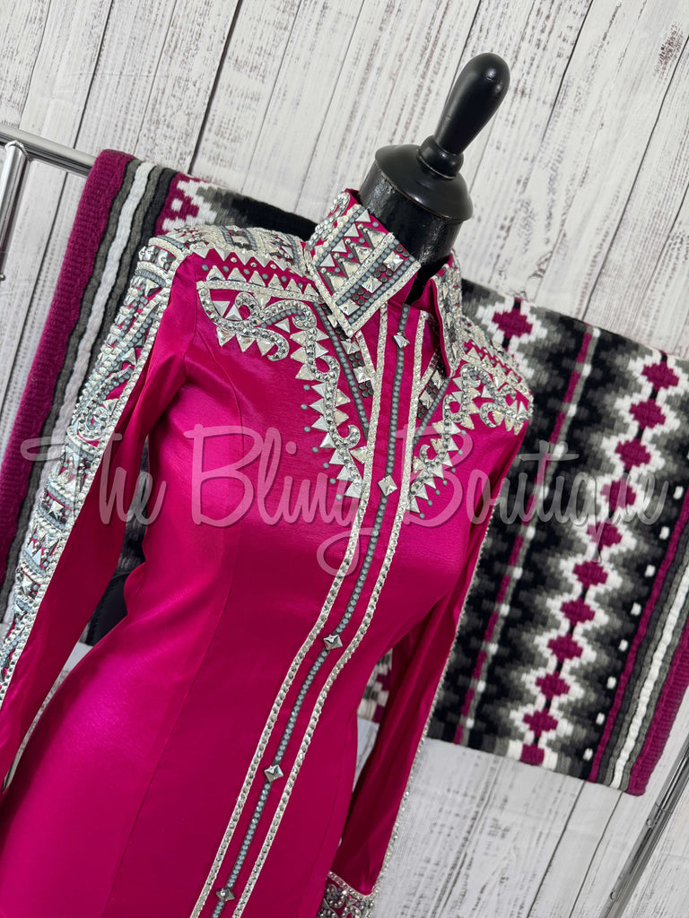 RE-ORDER Hot Pink, White & Grey Day Shirt Set  (Choose Your Size)