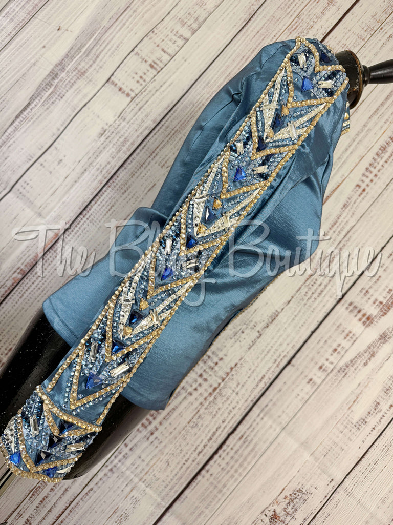 This gorgeous day shirt is absolutely stunning in person! The shirt is made from stretch taffeta base and is covered in the highest quality of crystals that sparkle from every direction.
