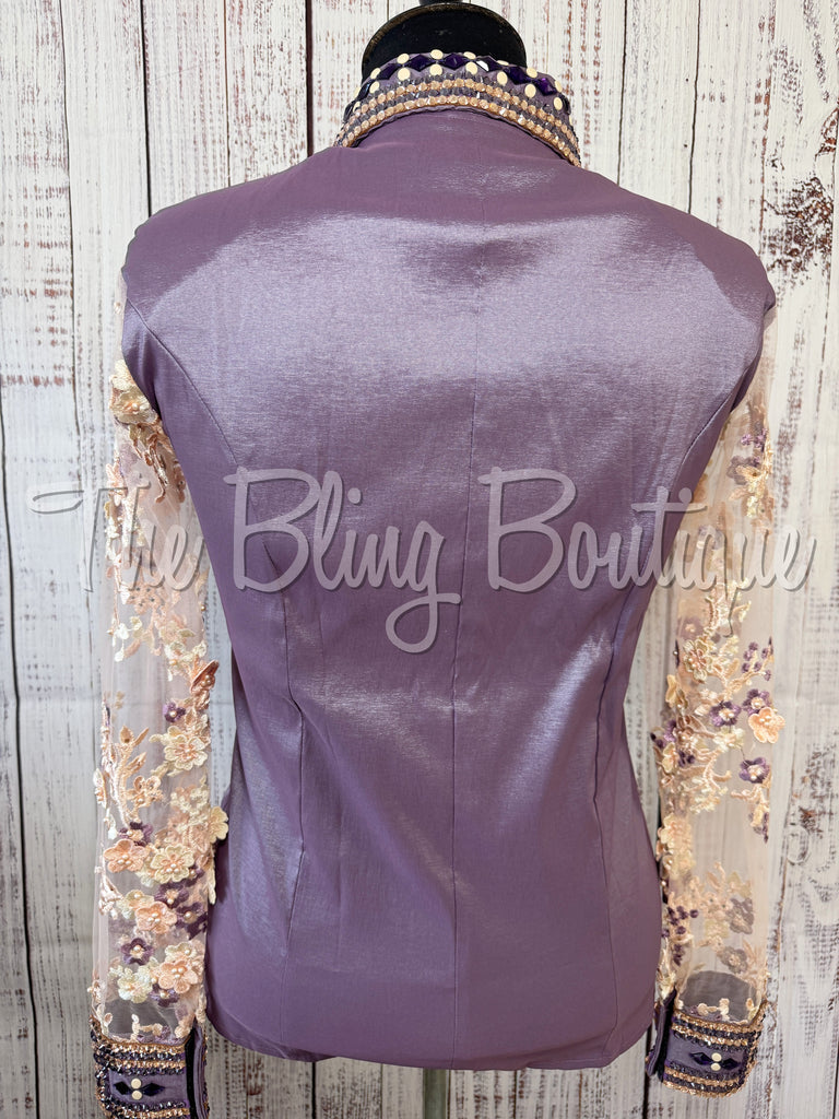 Orchid & Peach Day Shirt With Beaded Lace Sleeves (3XL)