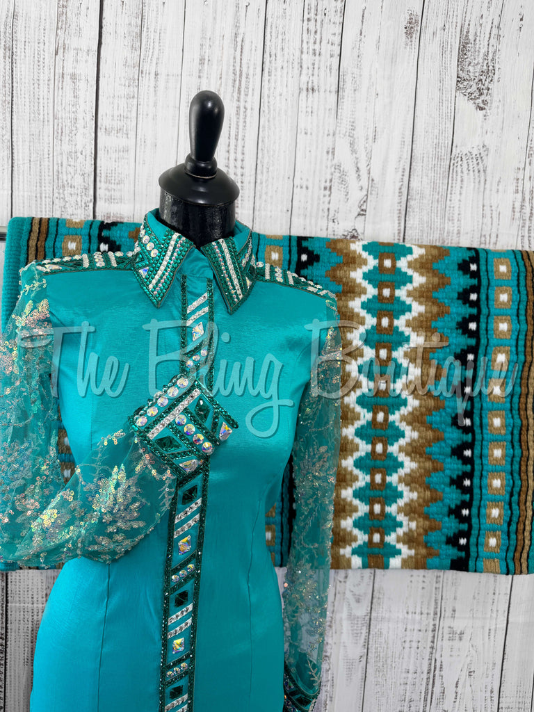 *This shirt can be purchased alone, or with the perfectly coordinating, custom, Bling Boutique show pad. (Size 34x42"). Pad does NOT have any metallic*