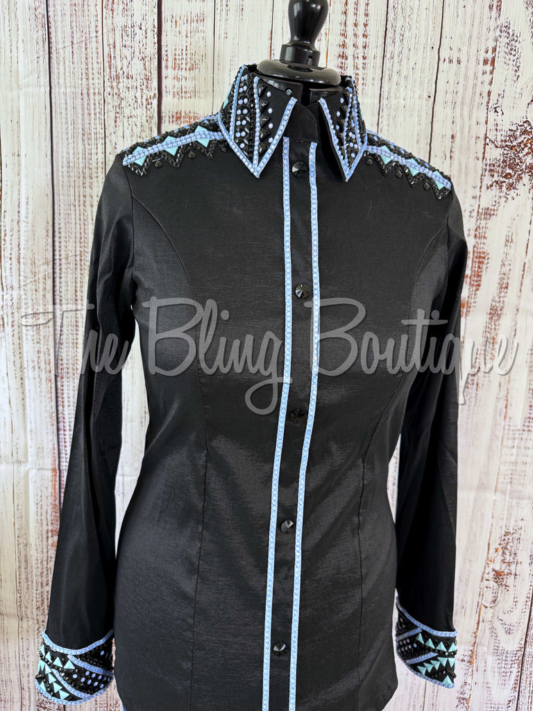 Black, Periwinkle & Aqua Day Shirt Set (L)