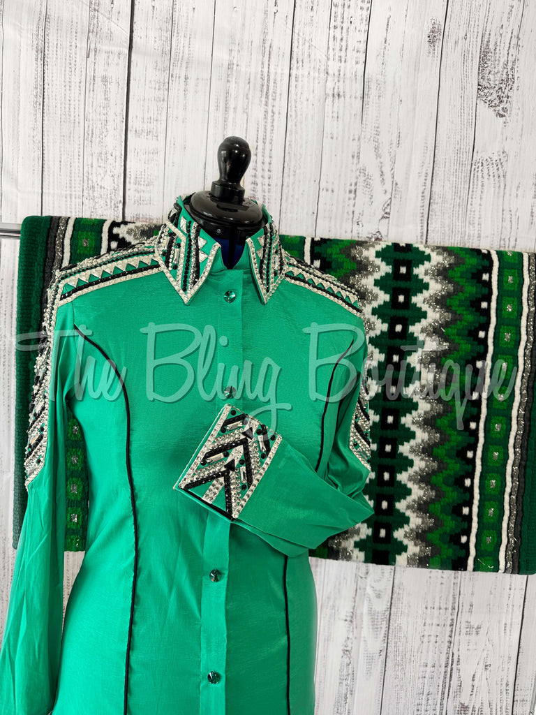 Kelly Green, Black, Silver & White Day Shirt Set (L)