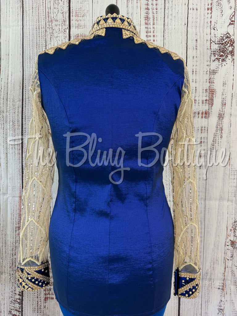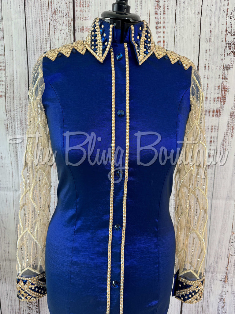 Dark Blue & Tan Day Shirt Set With Lace Sleeves (M)