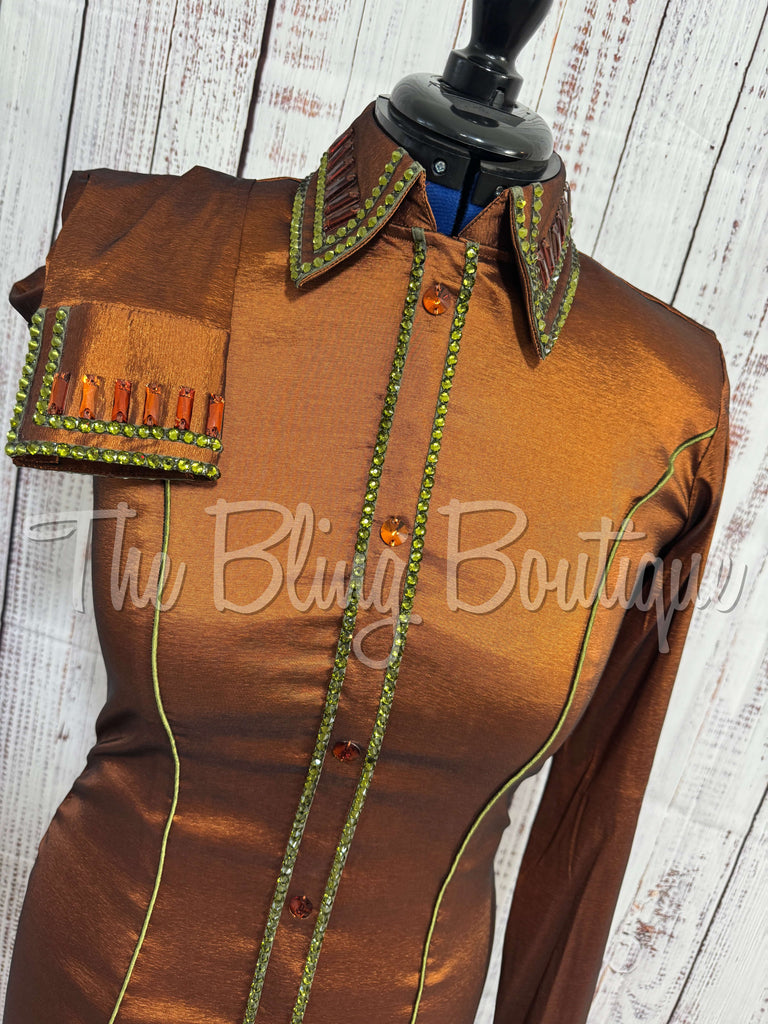The shirts are made from a stretch taffeta base and are accented with high quality glass crystals that sparkle from every direction.