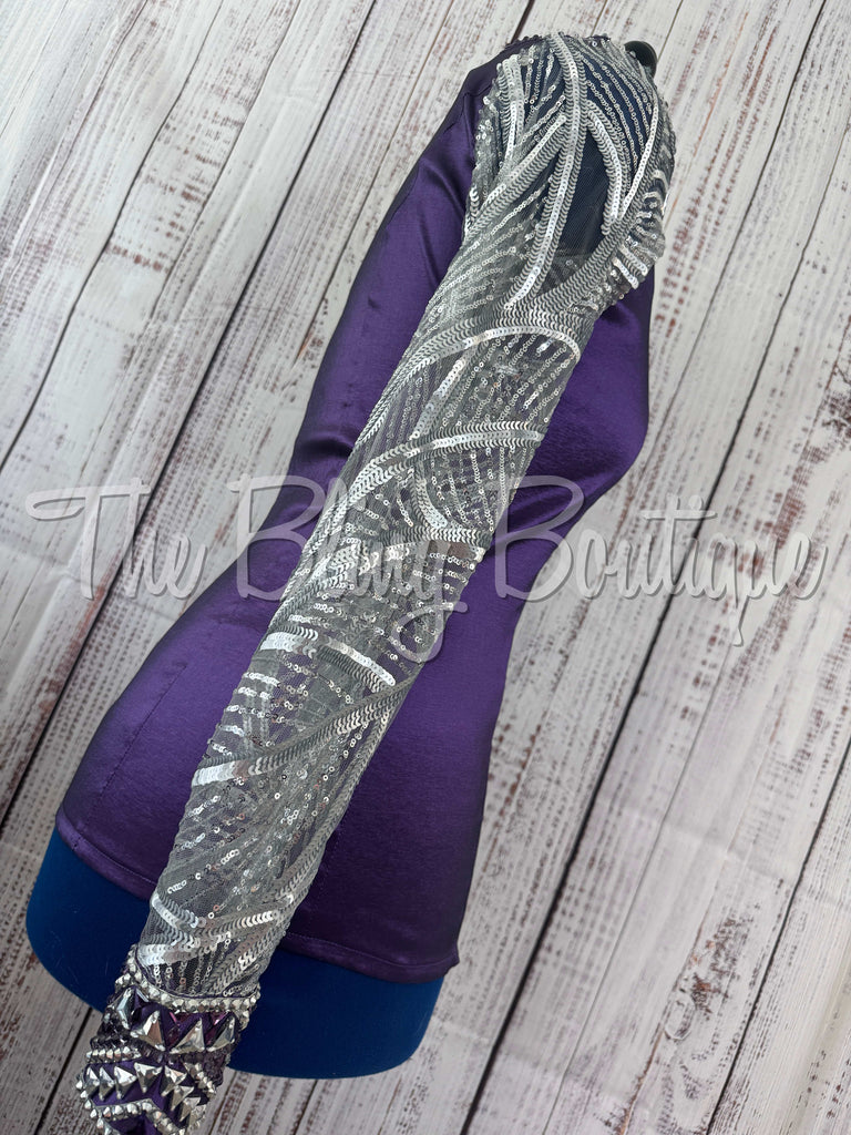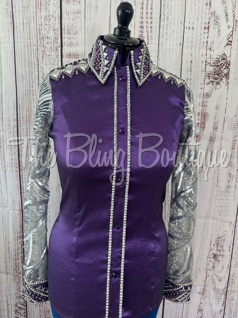 Purple & Grey Day Shirt Set With Lace Sleeves (M)