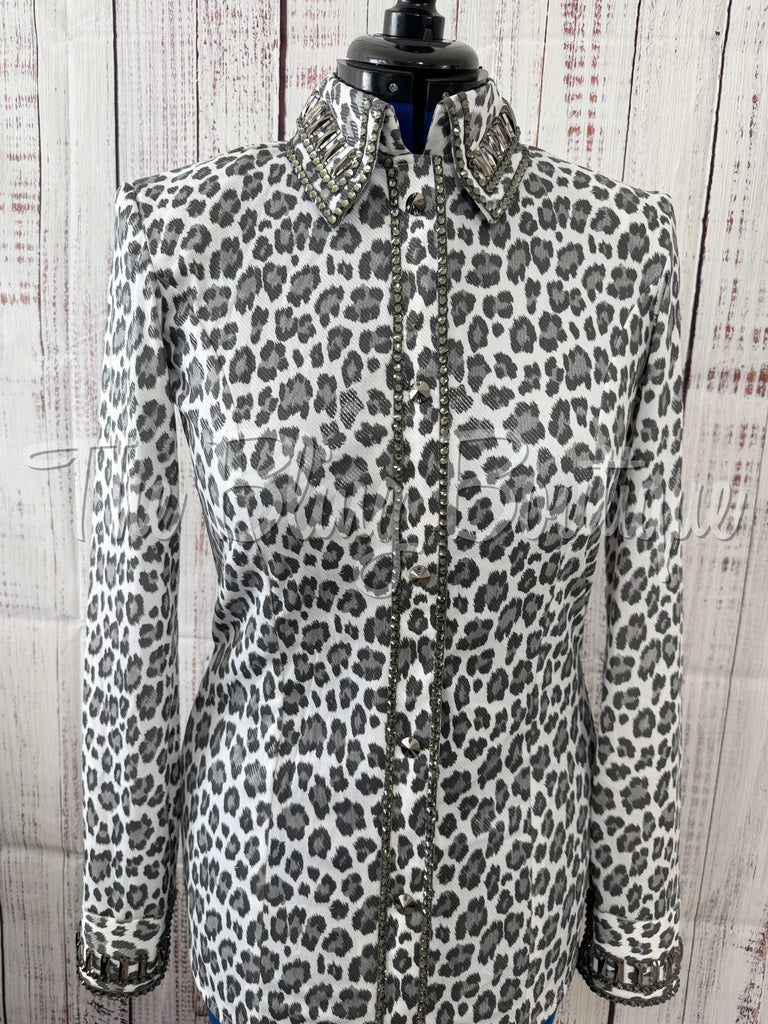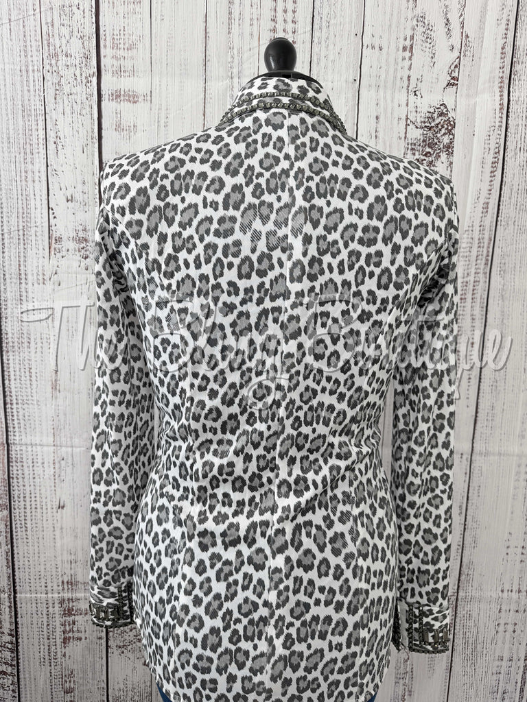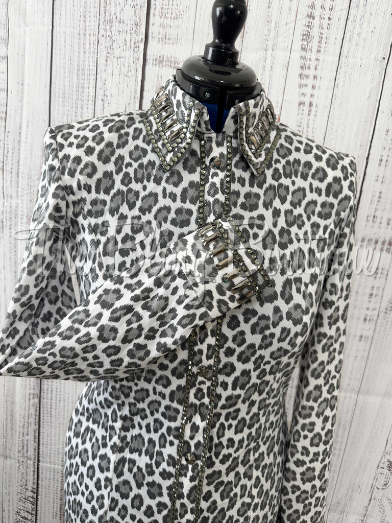 White & Charcoal Grey Leopard Print Day Shirt (XL)