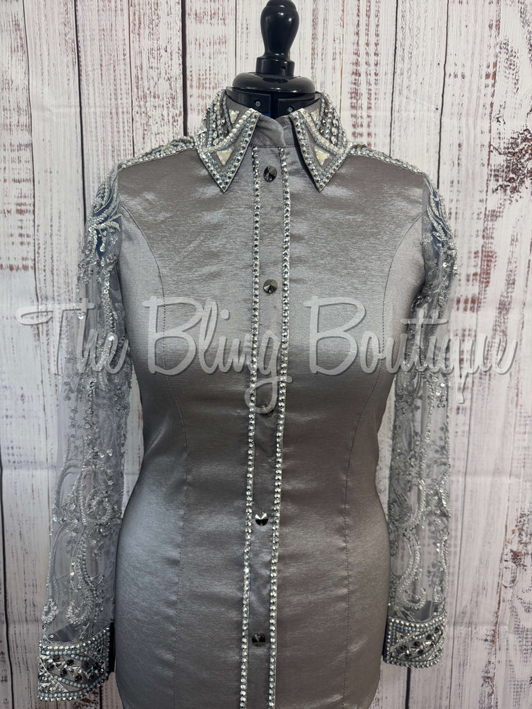 Grey Day Shirt Set With Beaded Lace Sleeves (M)