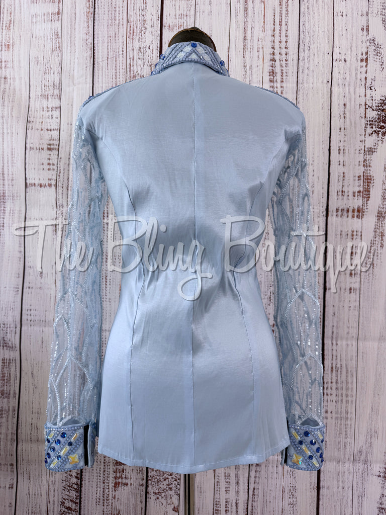 Powder Blue Day Shirt Set With Beaded Lace Sleeves (M)