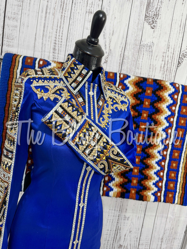 Royal Blue, Tan, Rust & Black Day Shirt Set (Small)